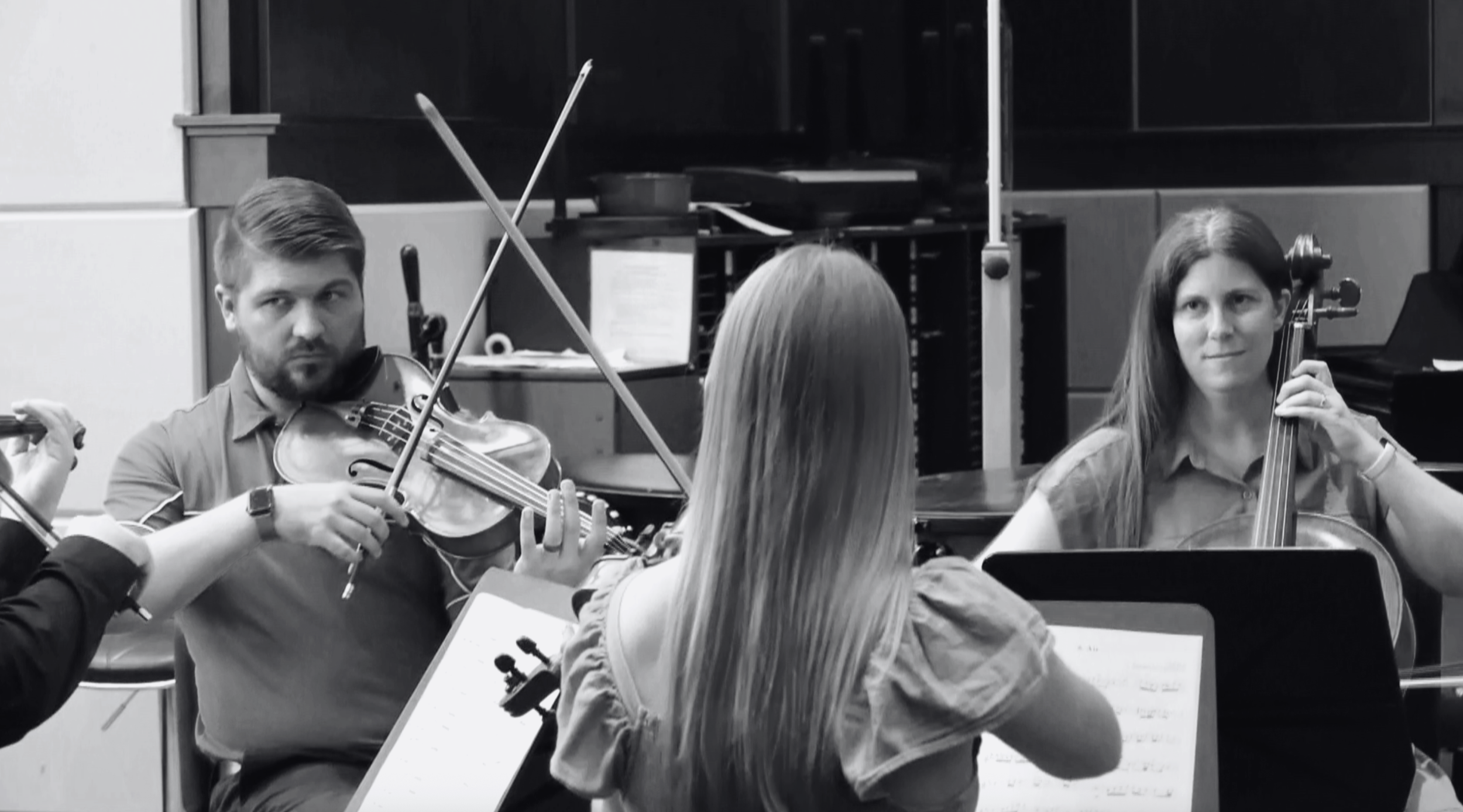 Musicians shown from left to right: Nicholas Bashforth (violin), Micah Neely (viola), and Ashley Allison (cello).
